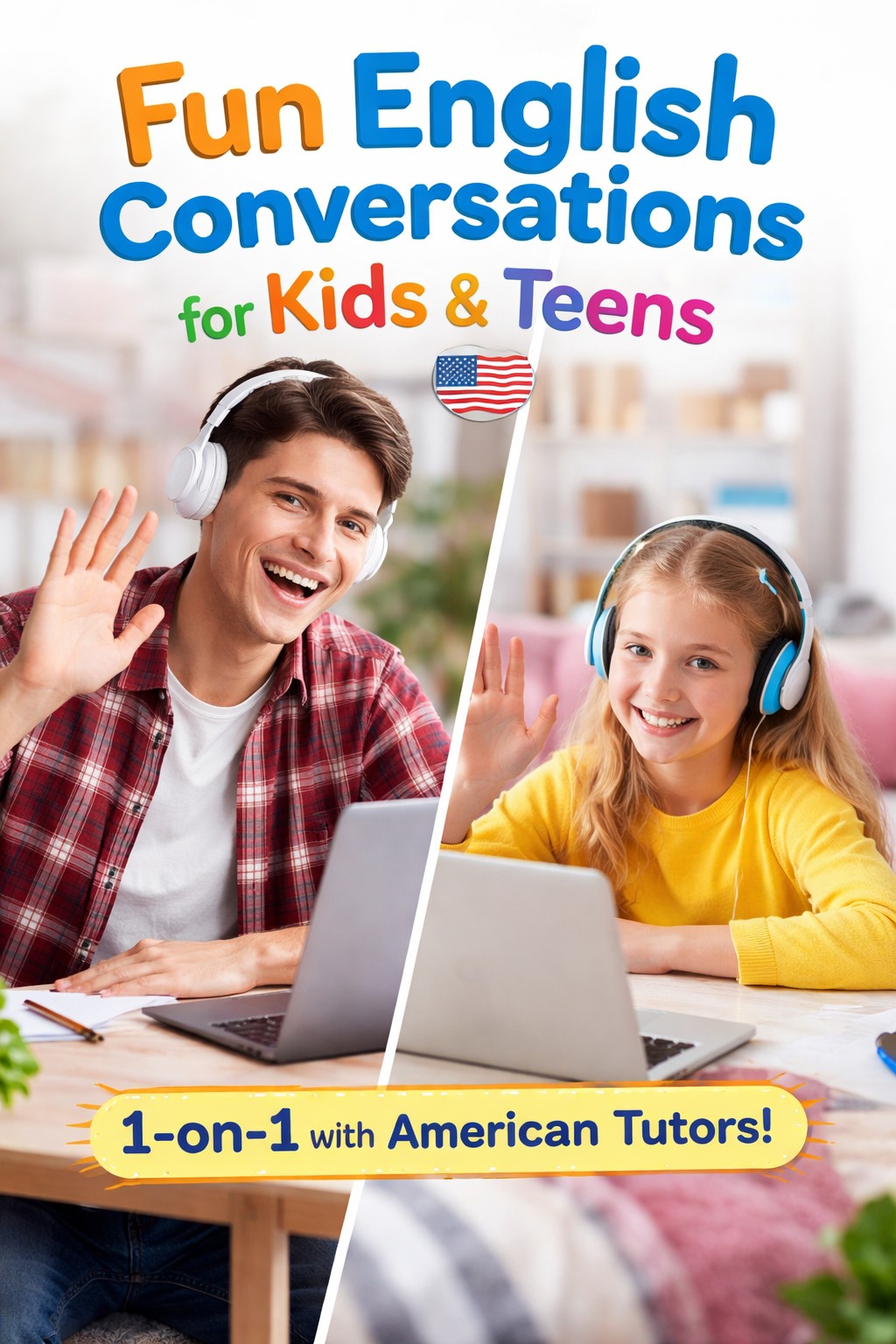 Nauka angielskiego nie musi być nudna. Rozmawiaj z rówieśnikiem — nastolatkiem z USA, który mówi tak, jak młodzi Amerykanie na co dzień. To naturalny kontakt z żywym językiem, slangiem, akcentem i kulturą.